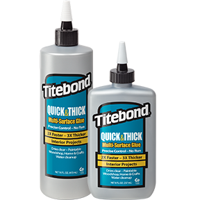 Titebond Quick & Thick Multi-Surface Glue is the thickest, fastest-drying water-based glue available for use with porous and semi-porous materials. It is ideal for wood, pottery, ceramic, stone, glass, fabrics, leather and most craft-type materials. Titebond Quick & Thick Multi-Surface Glue provides a strong initial tack and fast sp...